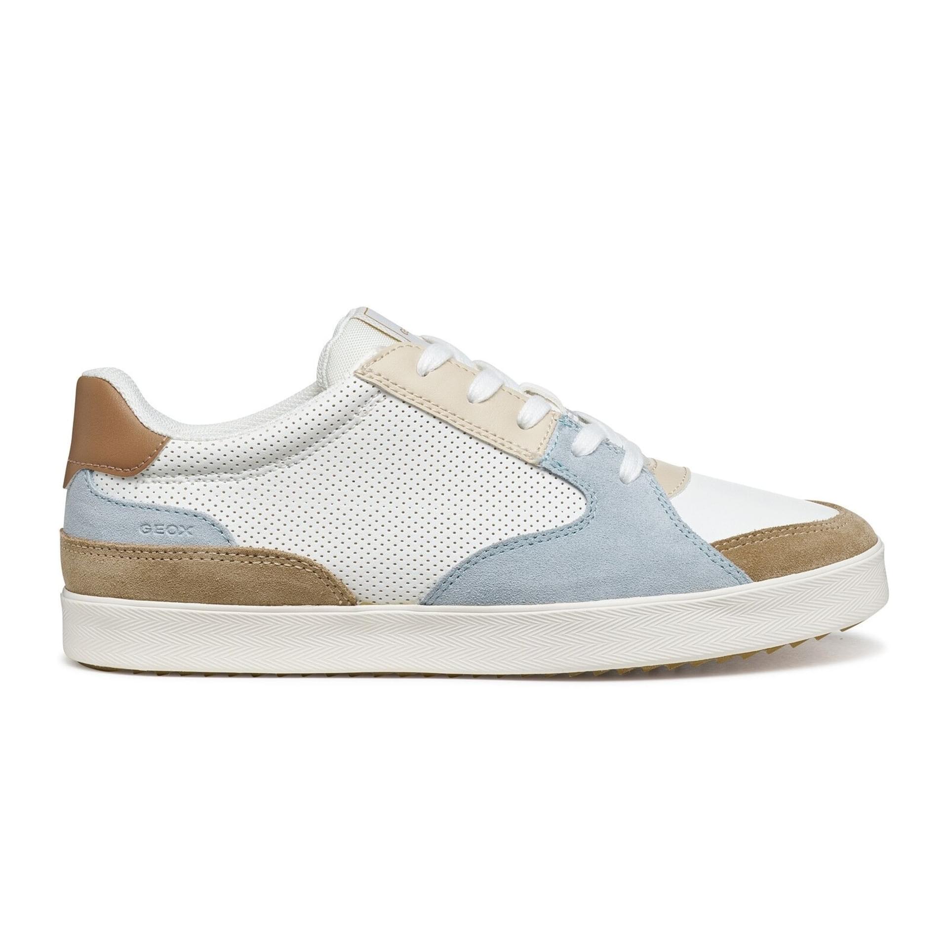 The Geox Blomiee women’s sneaker blends a fresh white base with subtle blue and