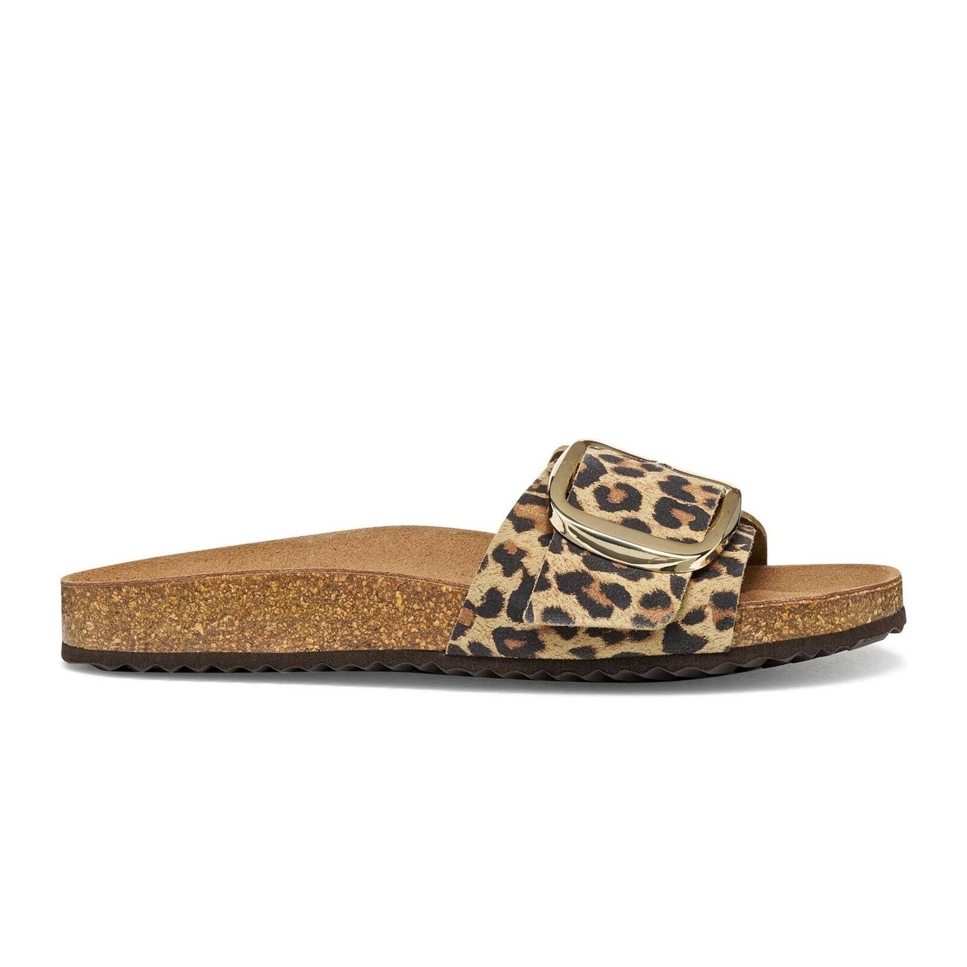 sandals for women. The wide suede strap with leopard print and the stylish