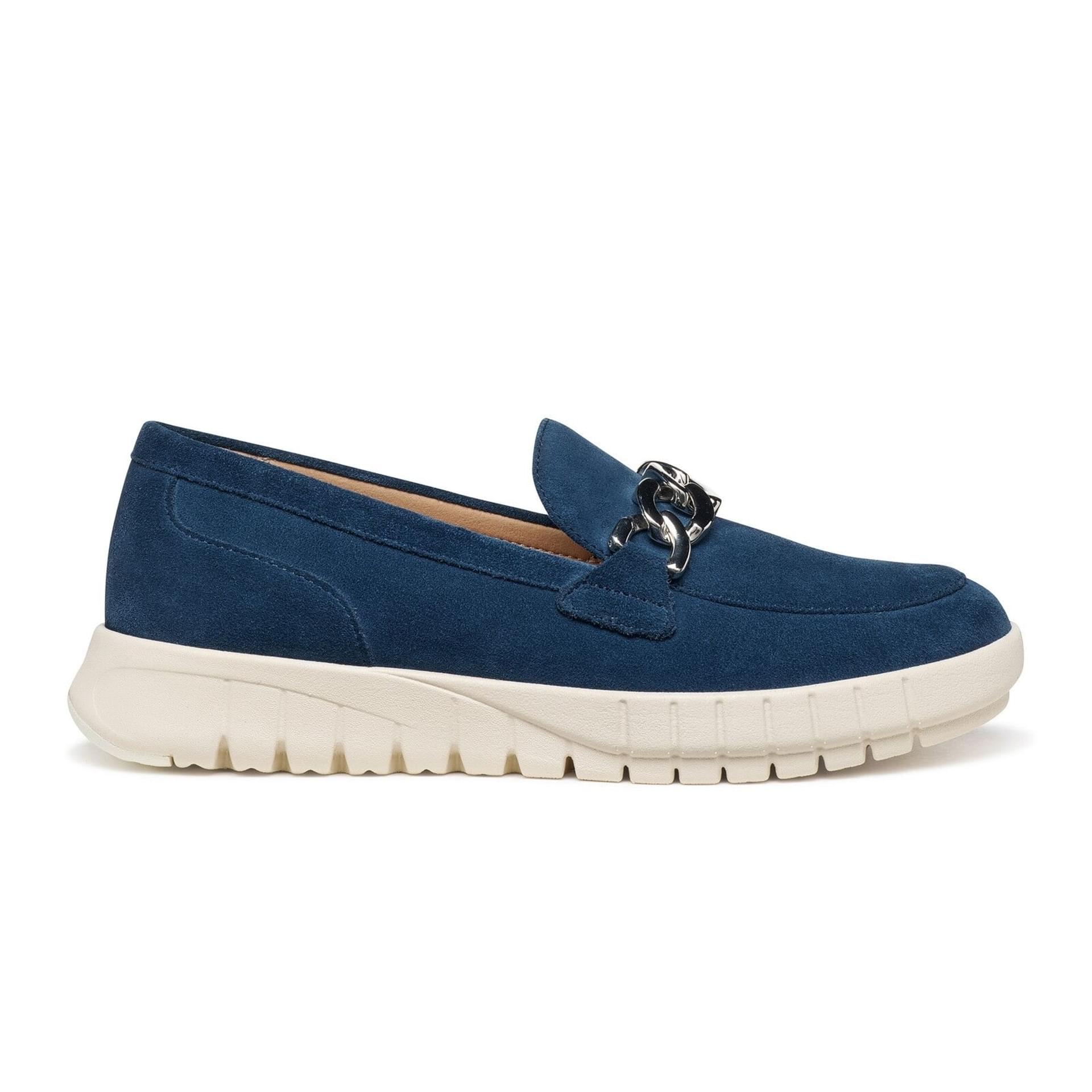 Discover a modern take on comfort with these blue Geox Flextride moccasins. The
