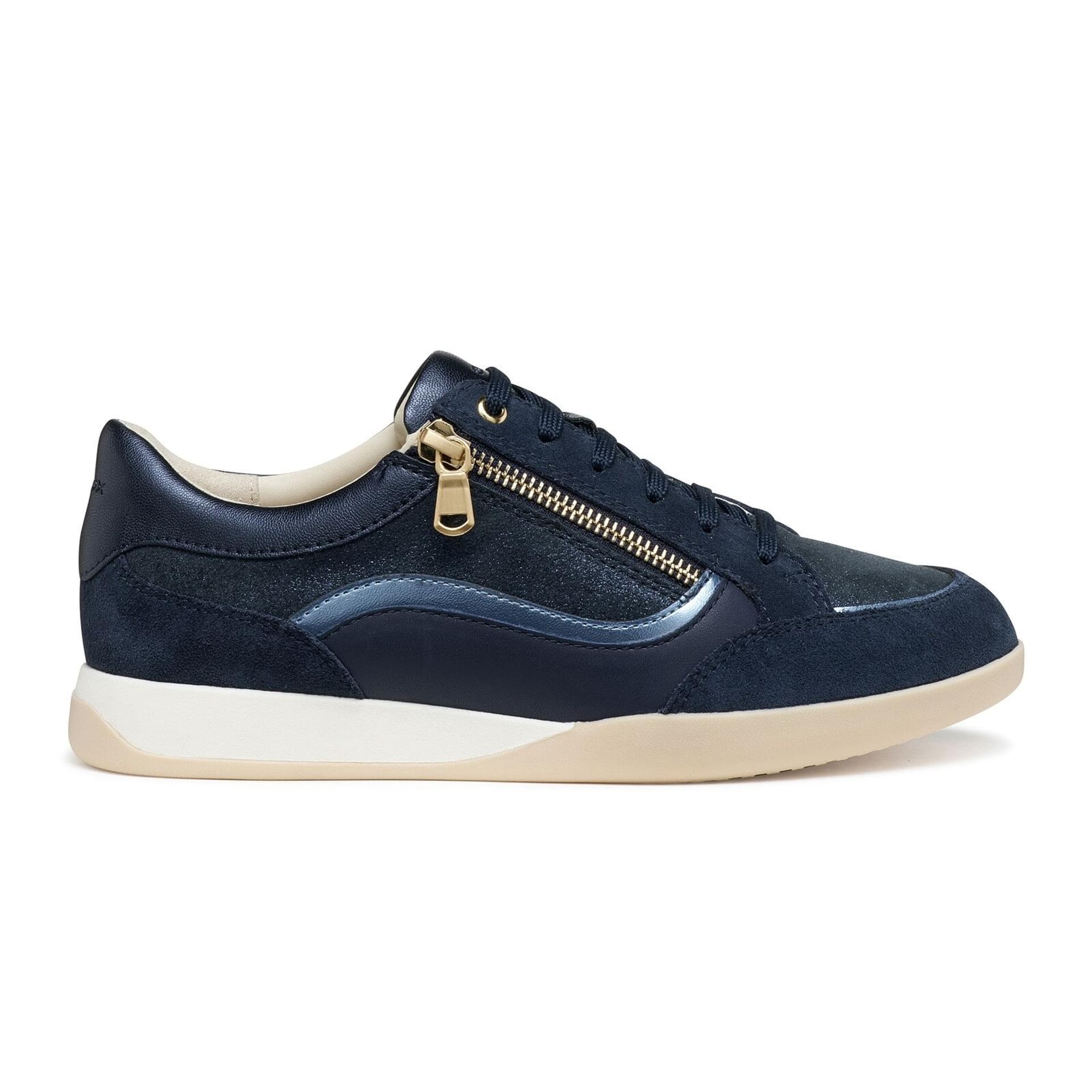 The Geox Maryemy sneaker in navy blue combines stylish materials with
