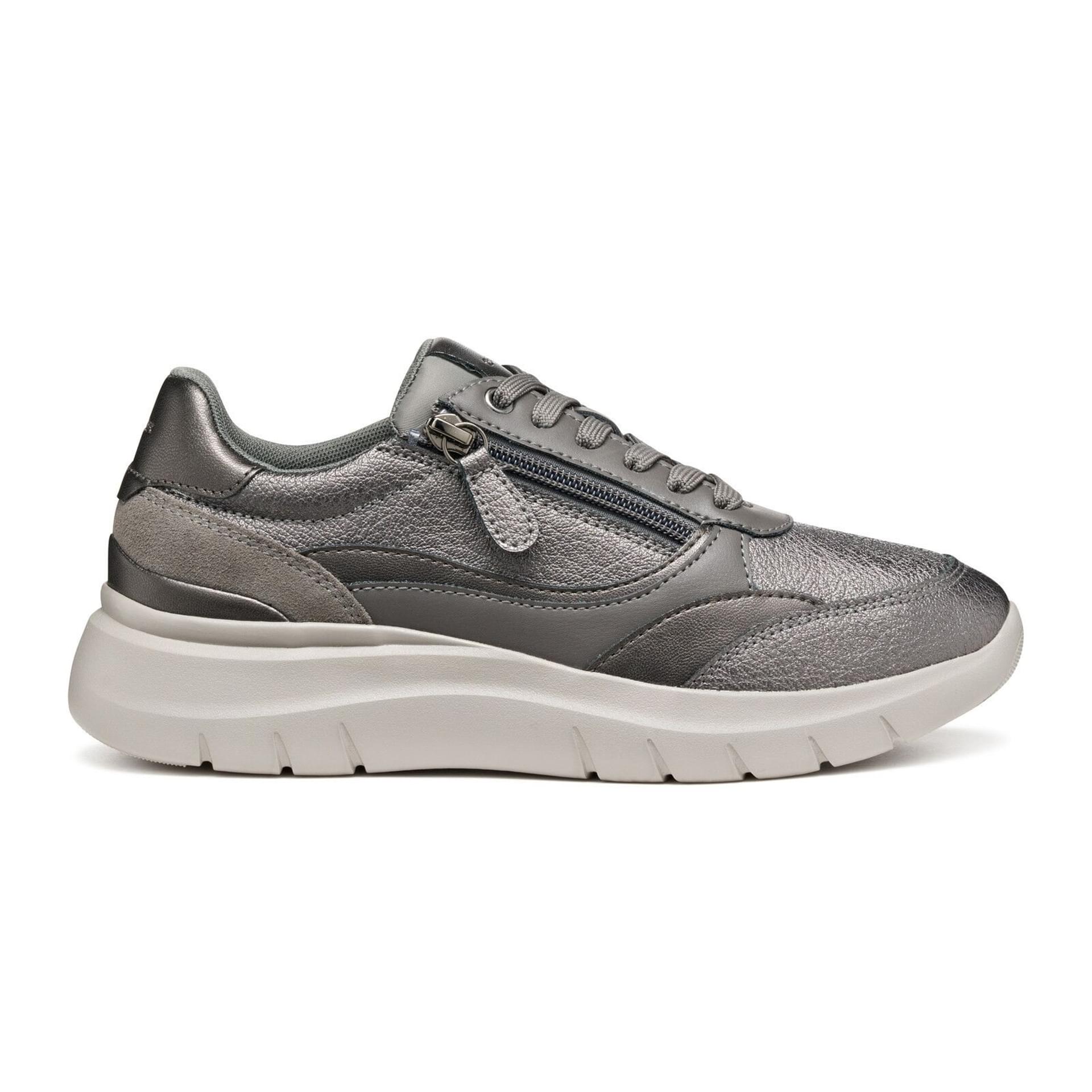 Plummery women’s sneaker. The subtle metallic grey with a white chunky sole