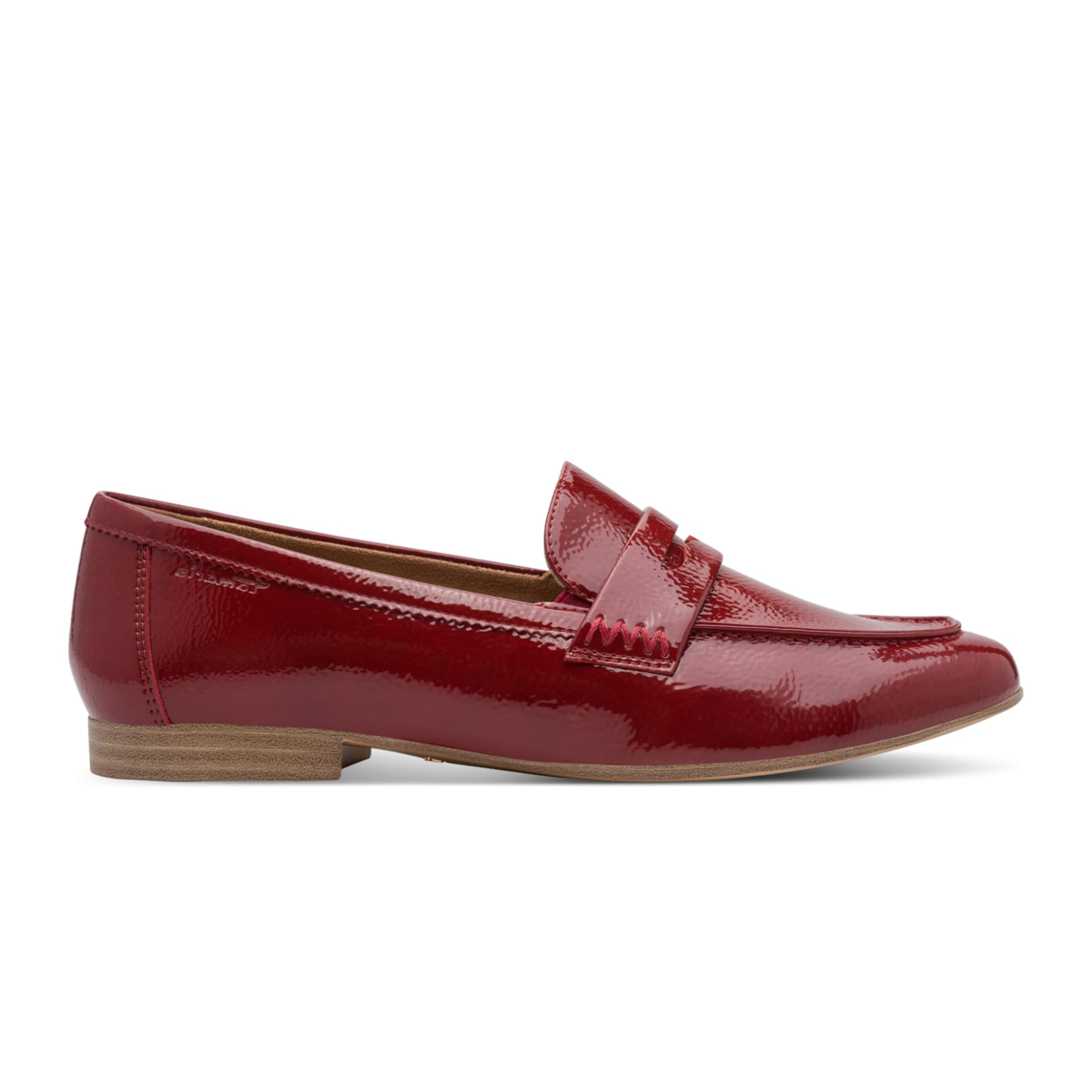 patent finish. The rich red color adds a playful, yet sophisticated touch to