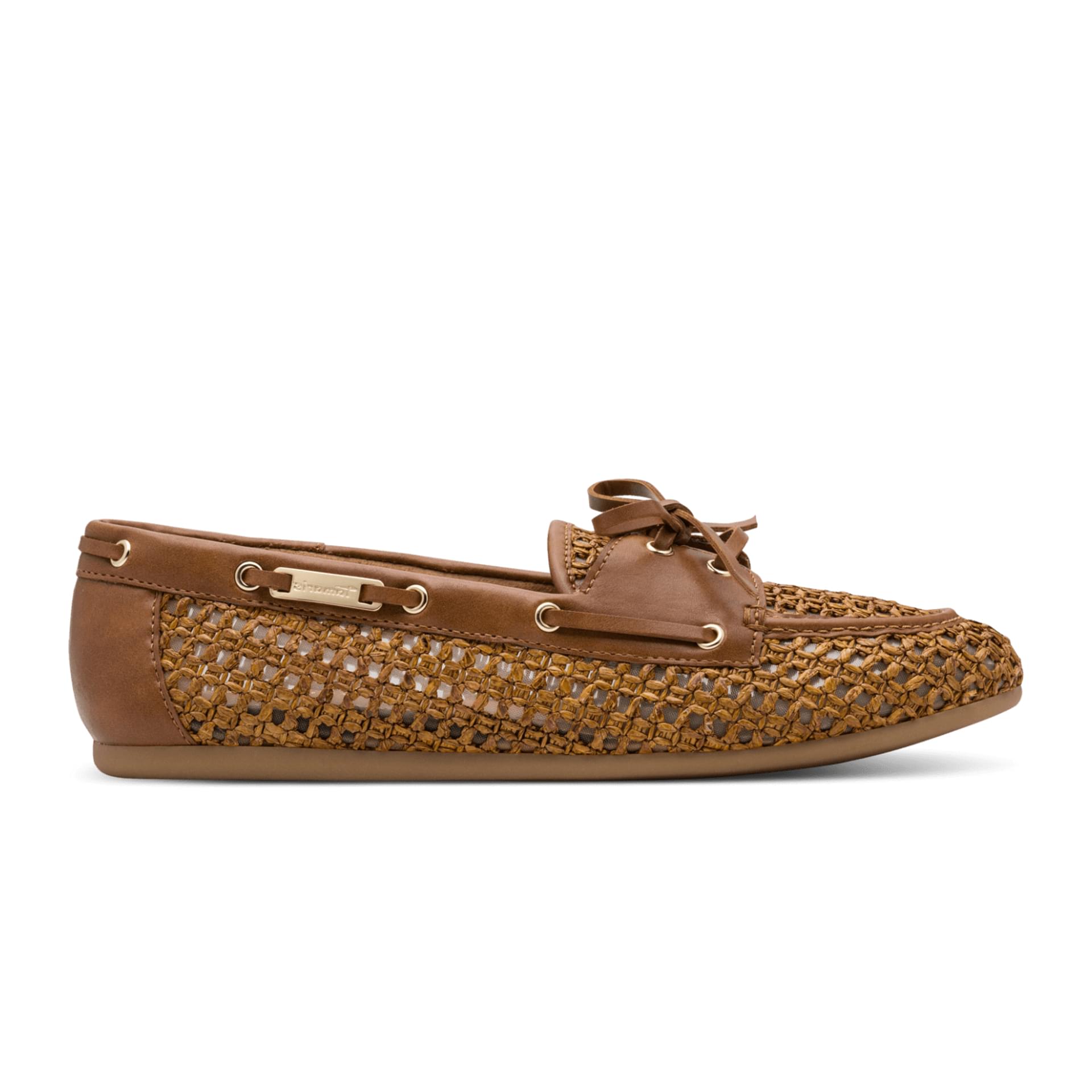 The warm cognac tone and unique woven pattern make this shoe stand out