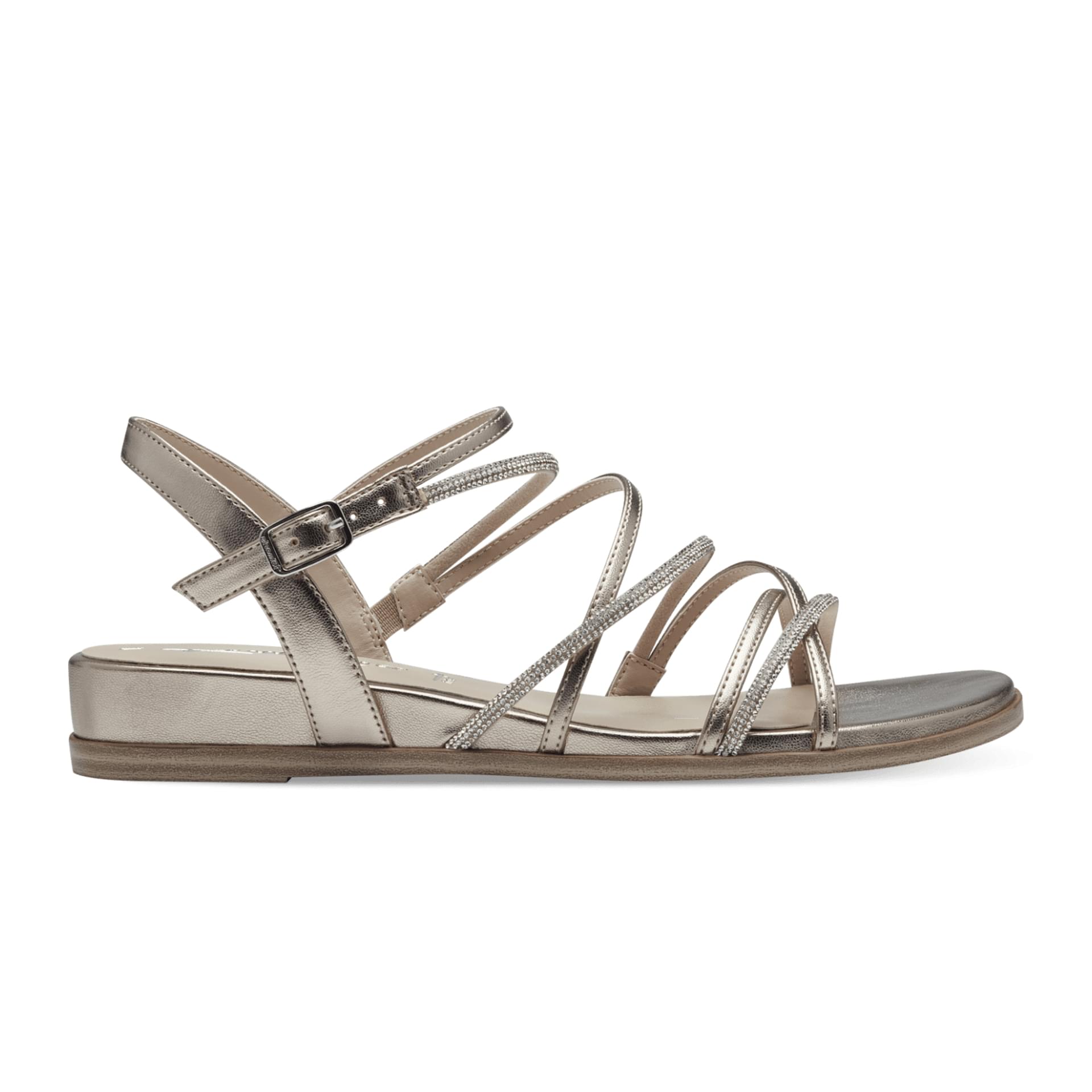 The Tamaris Gabriella sandals shine in a light-gold hue, perfect for