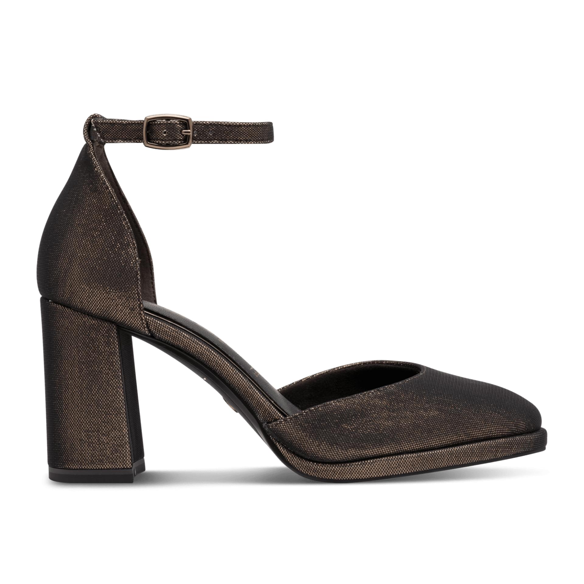 The soft Touchit insole molds comfortably to your foot, keeping you feeling good all night long. With a 9 cm block heel, you enjoy a boost in height without sacrificing comfort or stability.