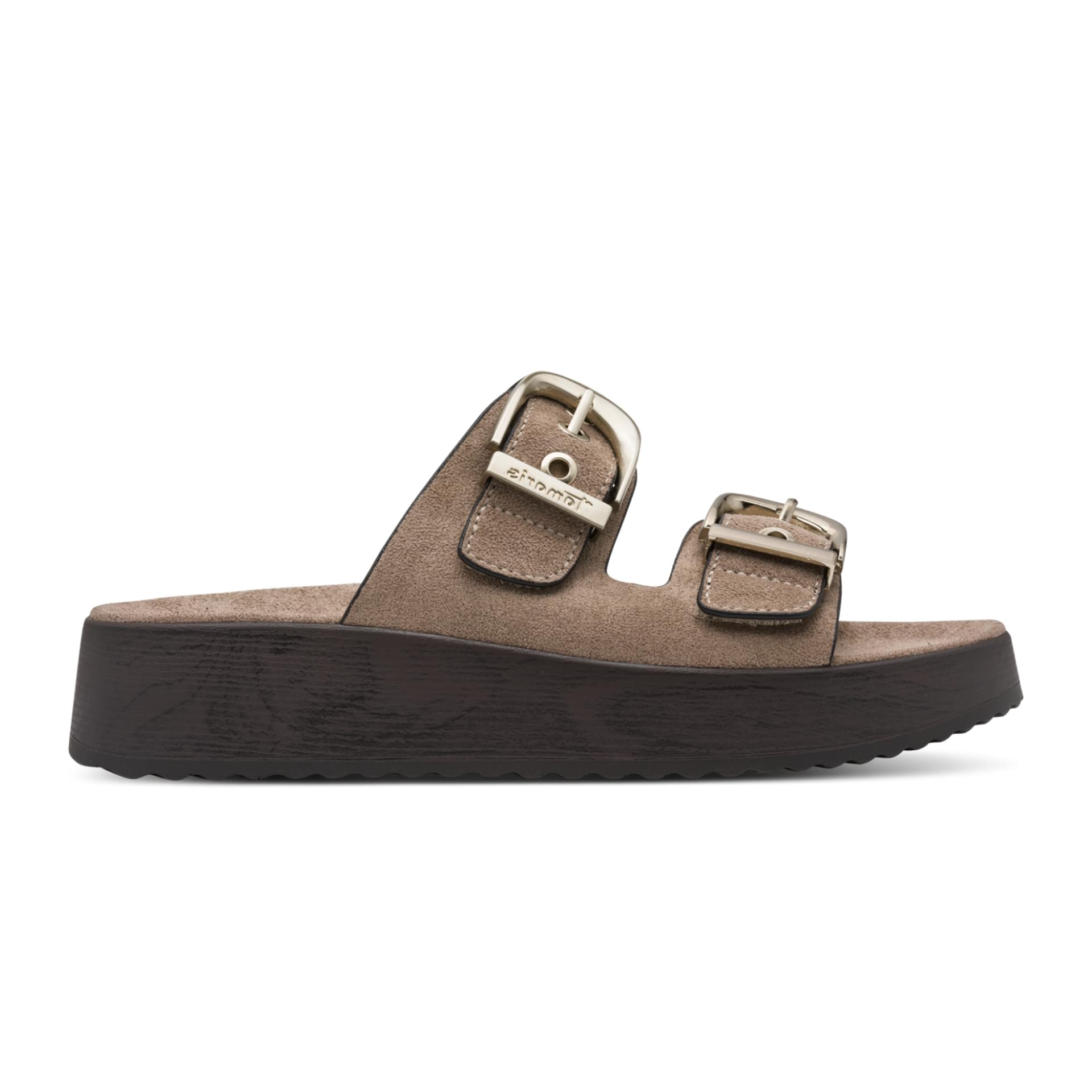 sandals in taupe. The sturdy 5 cm platform sole adds extra height to your