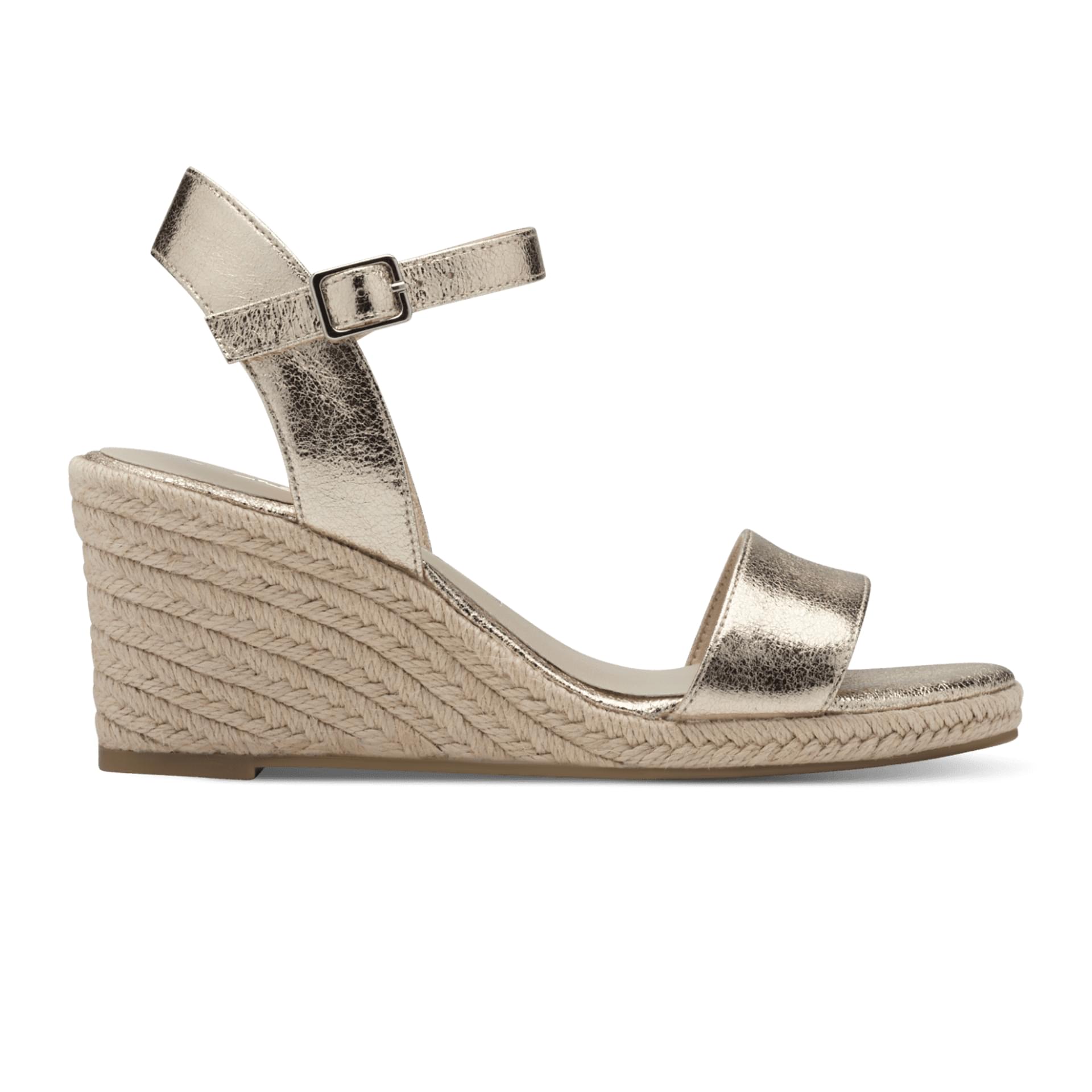 With a 7.5 cm wedge heel and a 1.5 cm platform, you’ll enjoy the perfect balance of height and stability. The textile straps and espadrille-style outsole add a refined touch, while the buckle closure keeps things practical and secure.
