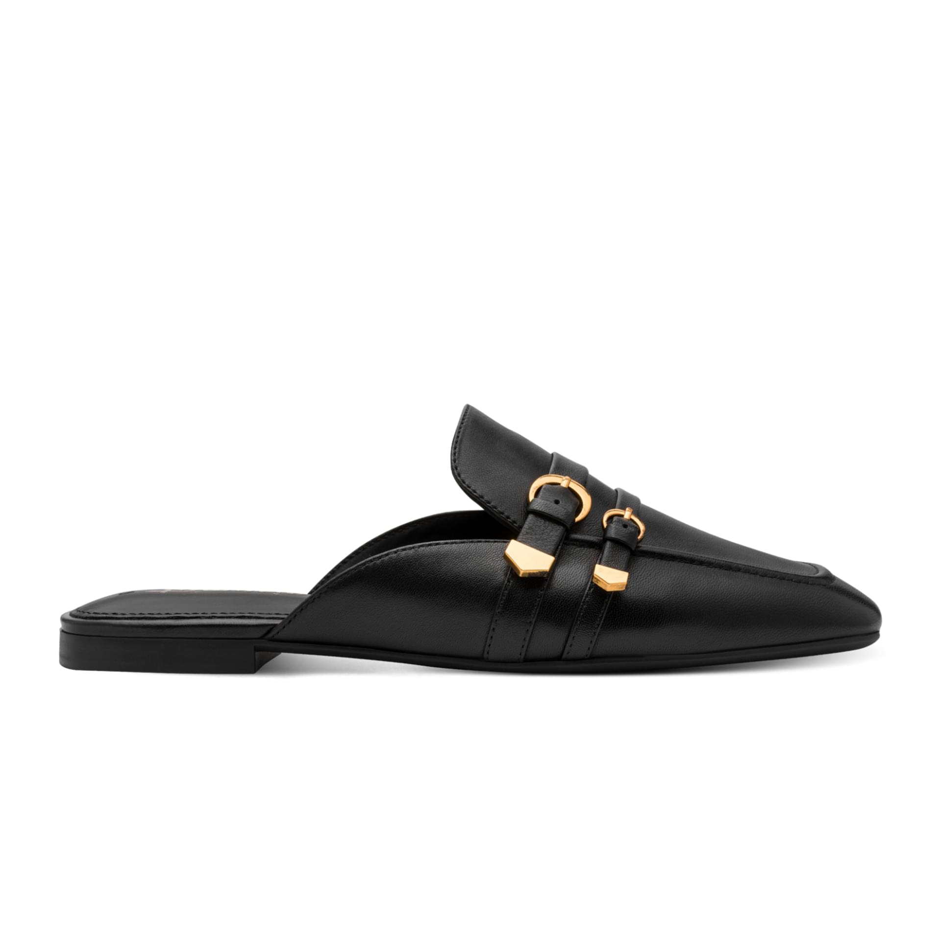 Gold-tone buckles add a modern touch to the timeless look.
