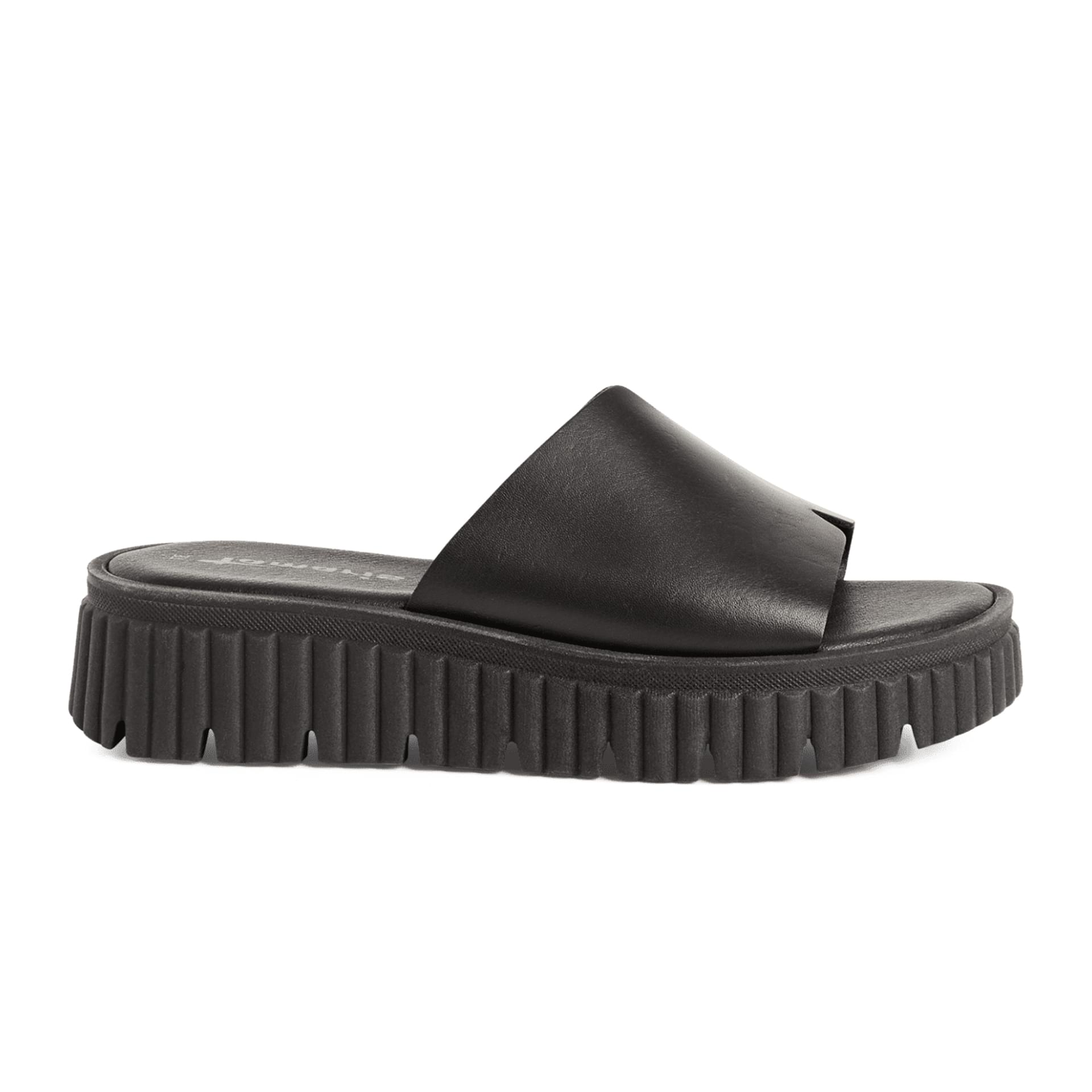Discover the easy comfort of the black Tamaris Santal mule - a modern sandal