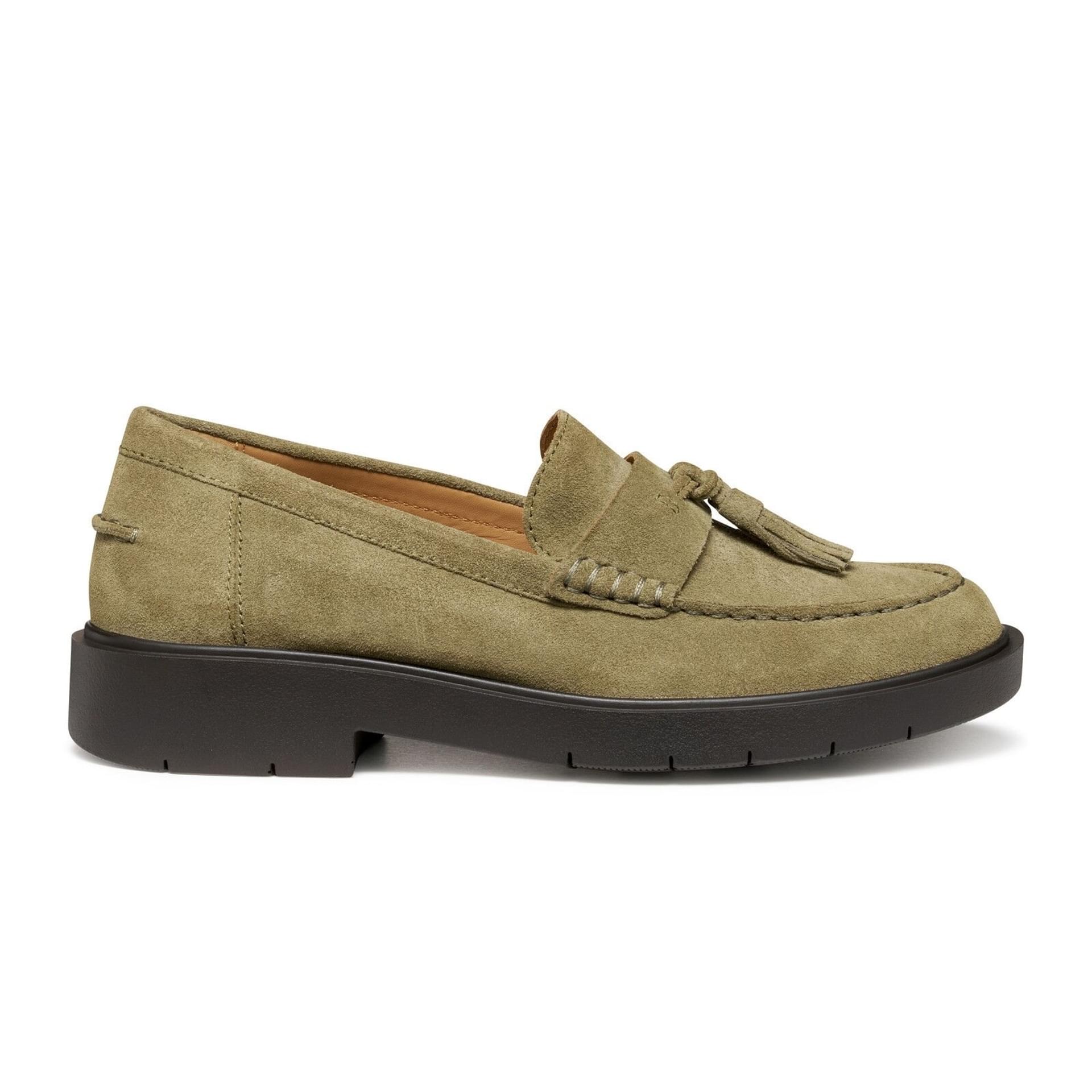 Découvrez le mocassin Geox Spherica dans une élégante couleur vert mousse. Ce