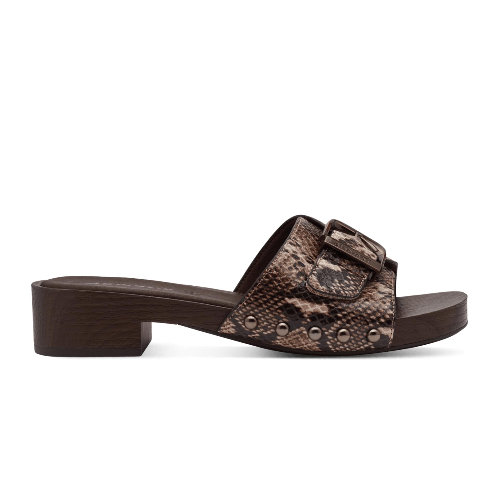 Découvrez la sandale Tamaris Buela avec son imprimé serpent brun saisissant.