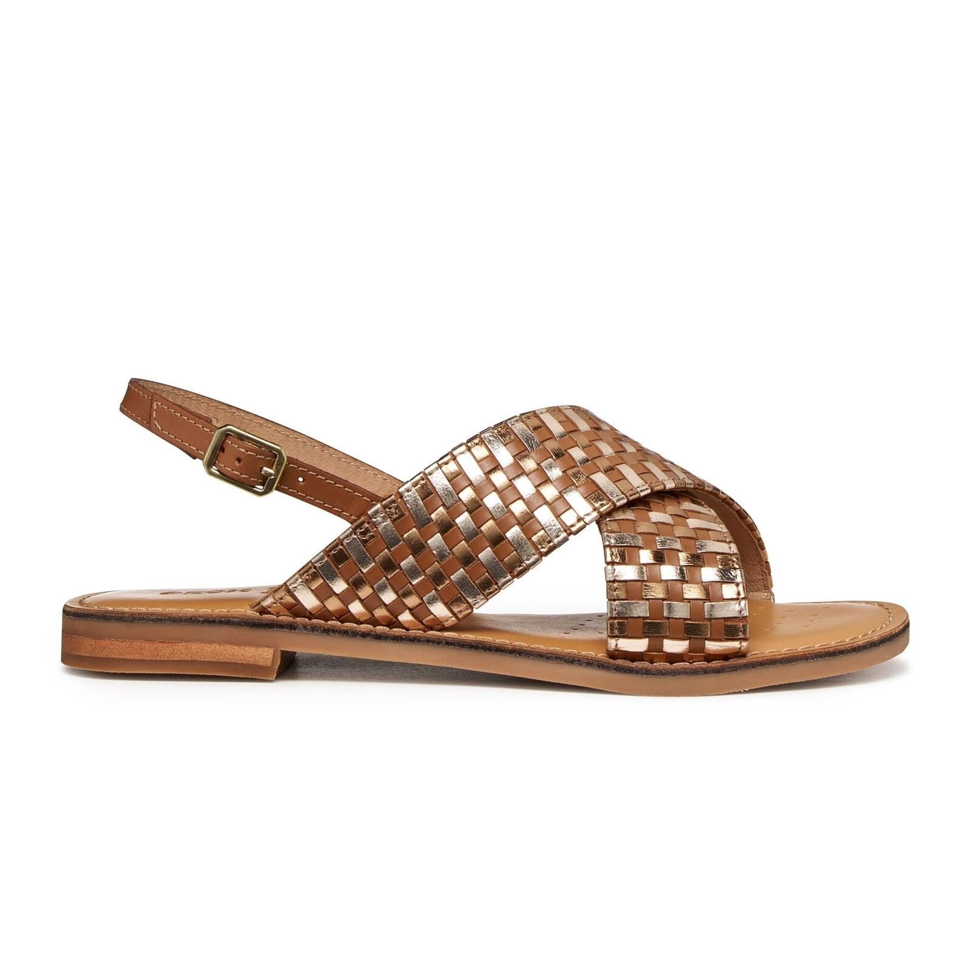 Deze Geox sandalen trekken meteen de aandacht met hun geweven banden in