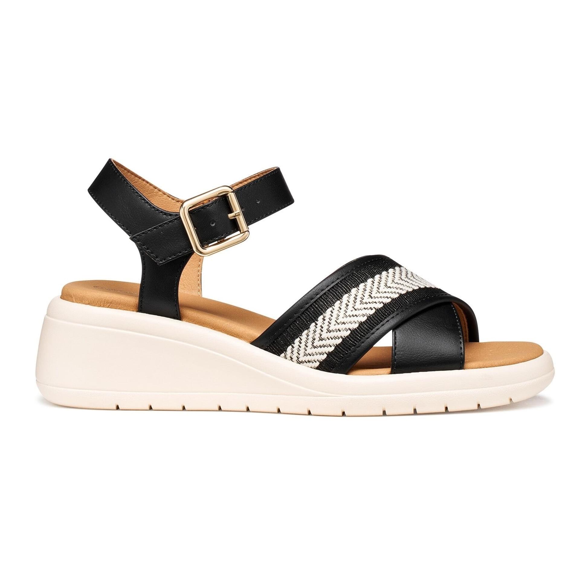 Laat je verrassen door het moderne ontwerp van deze zwarte sandalen van Geox.