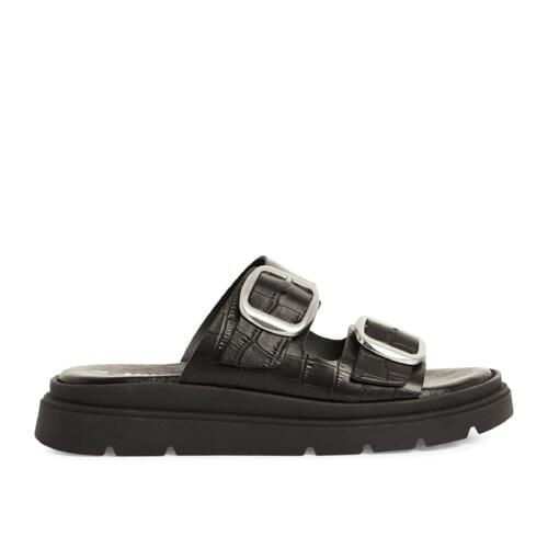 De eenvoudige slip-on instap maakt dit model bijzonder praktisch. Dankzij het tijdloze zwarte design pas je deze sandalen makkelijk bij elke outfit, van een zomers kleedje tot een casual jeans.