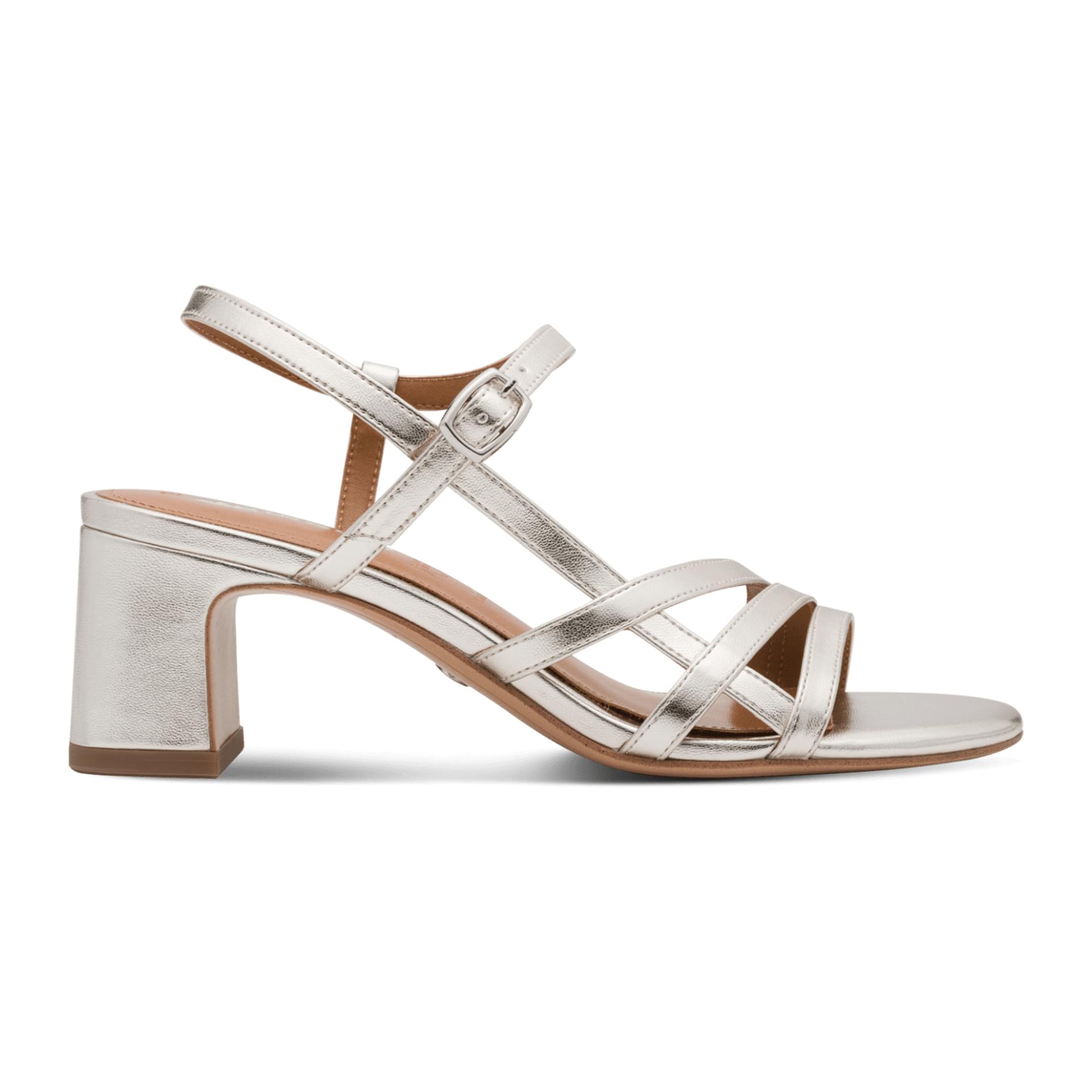 De dunne, elegante bandjes sluiten mooi aan rond de voet en dankzij de verstelbare enkelriem met gesp geniet je altijd van een comfortabele pasvorm. De stevige blokhak van 5,5 cm zorgt dat je moeiteloos en elegant door de dag stapt, zonder in te boeten op stabiliteit.